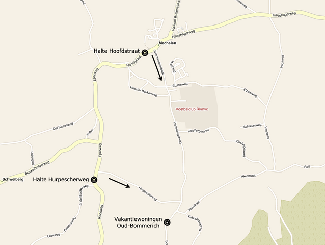 Vanaf Centraal Station Maastricht: Neem lijn 57 richting Gulpen.. Uitstappen bij halte Hurpeschwerweg in Mechelen (eerste halte na Epen). U kunt ook verder uitstappen op de eerste halte in de Hoofdstraat in Mechelen en vervolgens genieten van een lange wandeltocht door het Limburgse landschap. Bekijk de kaart op onderstaande plattegrond.